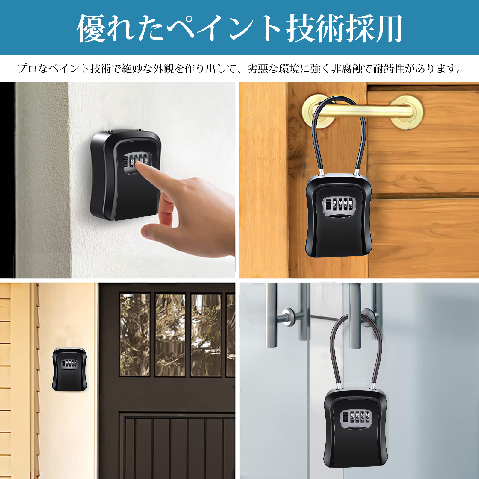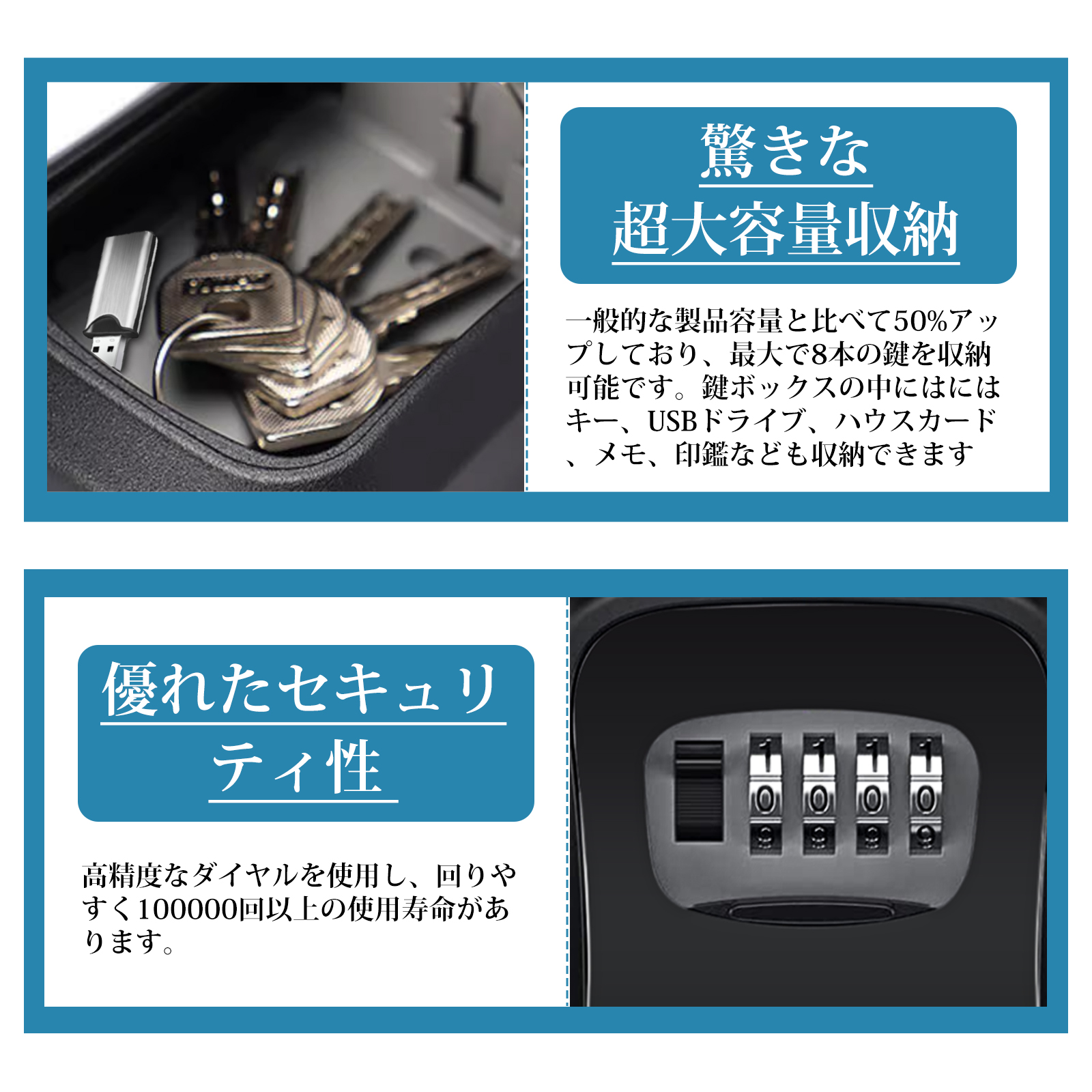 Supulin キーボックス 屋外 ダイヤル式【全金属製・大容量収納】セキュリティボックス ワイヤータイプ 鍵収納 4桁暗証番号 壁掛け 鍵ボックス キー収納 防犯 防水 盗難防止 車 玄関 会社 工事現場 倉庫 アウトドア オフィス 家庭用